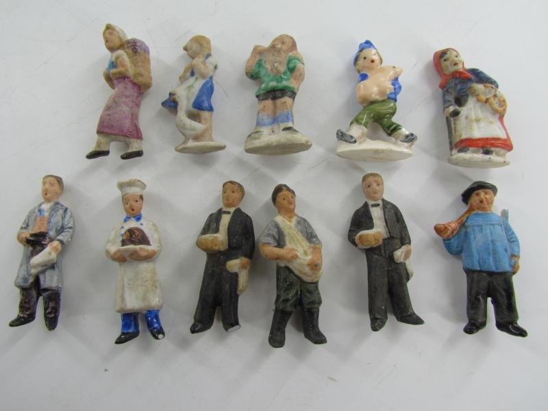 Winterhilfswerk gift tokens, hand-painted 2" tall porcelain figures with pin backs representing German workers from all walks of life