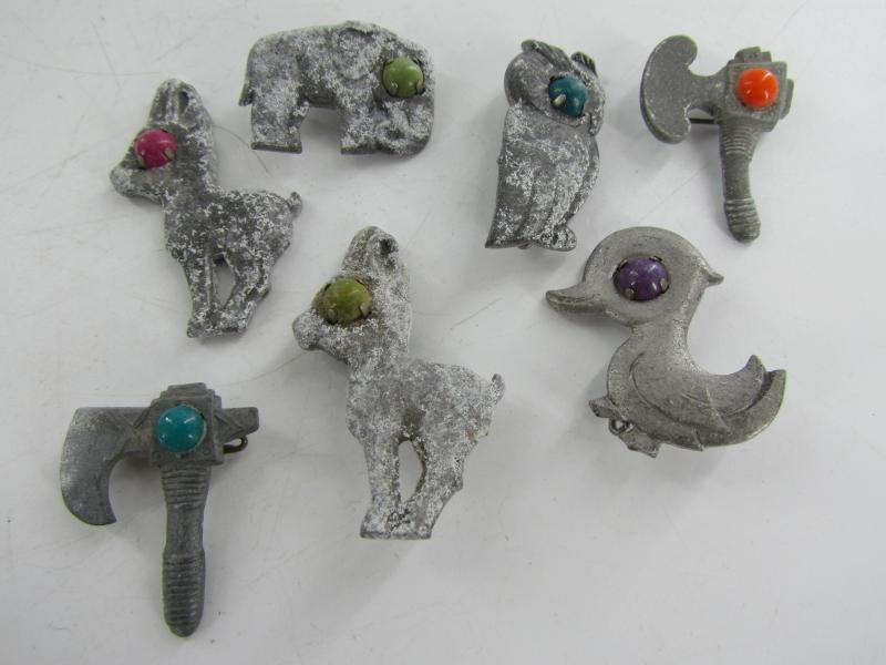light metal WHW pins from February 1939 in the shape of animals. All these WHW Tierabzeichen still have their original colored 'eyes' which are actually set with prongs