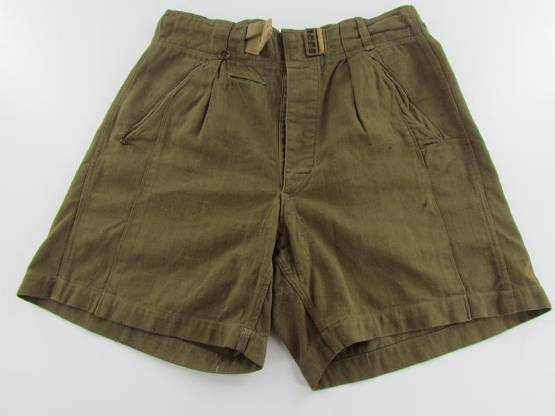 tropical troop shorts, made in the typical cotton fabric. Internally marked with sizes and manufacturer but hard to read