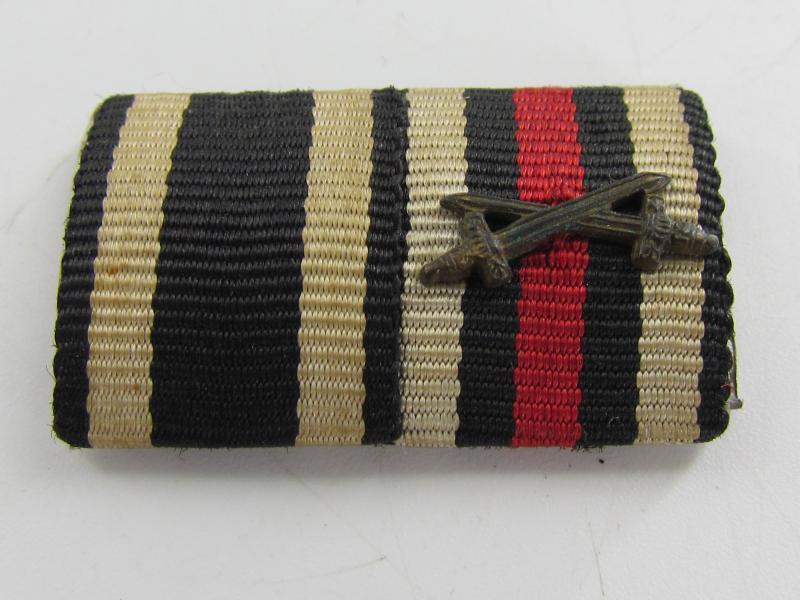 Wehrmacht 2-Piece Ribbon-Bar (Bandspange). The ribbon bar is showing ribbons for for the World War 1 Iron Cross 2nd Class, the Hindenburg Cross with Swords