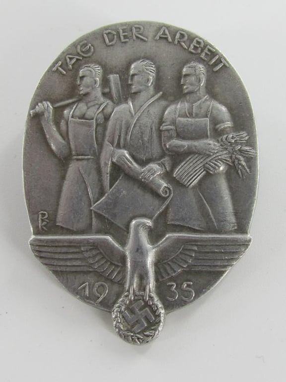 Tinnie "tag der Arbeit 1935" by Fechler Bernsbach SA, Aluminium construction with crimped in set up.