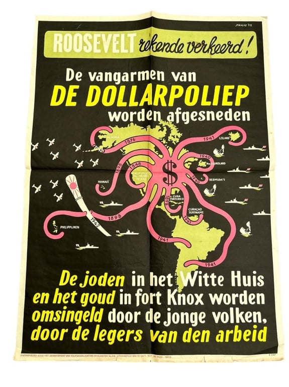WW2 Poster : De Vangarmen van de Dollarpoliep ( Louis Manche )