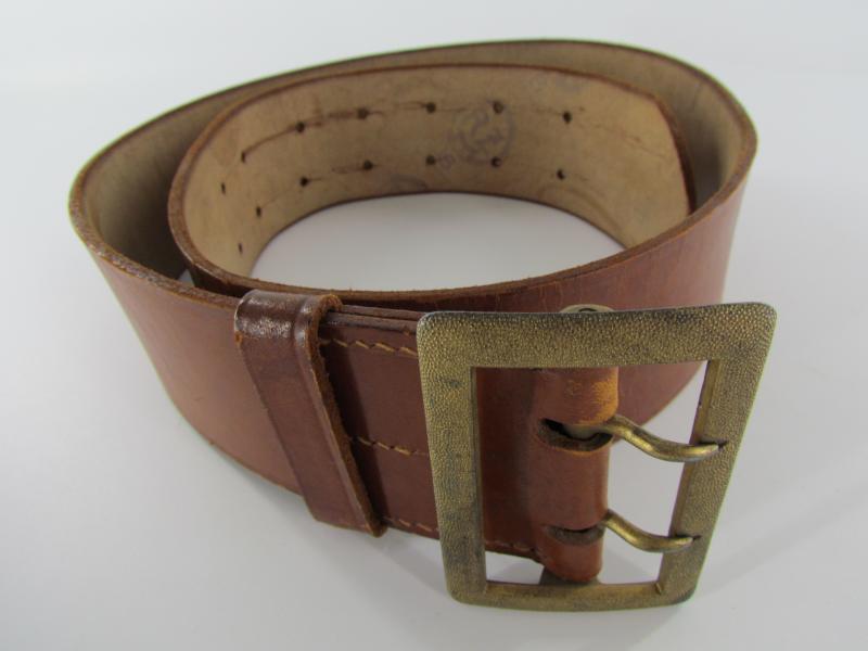Political Brown Belt & Open Claw Belt Buckle (Koppel und Zweidornschnalle). The open claw belt buckle was authorized for wear by almost all political and military organizations during the Third Reich. The 115cms long and almost 60mm wide brown leather belt is having a gold-coloured buckle (Zweidornschnalle) attached