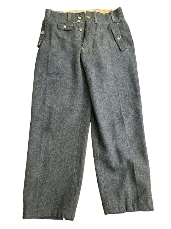 The trousers have a nice mix of late war buttons with one missing in the middle, and the right pocket button being repaired sometime after the war.