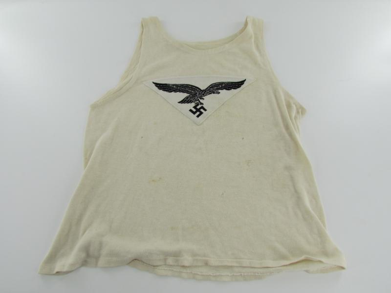 Luftwaffe sport shirt in worn condition. Comes with its original Luftwaffe chest eagle zig-zag stiched on the front of the shirt