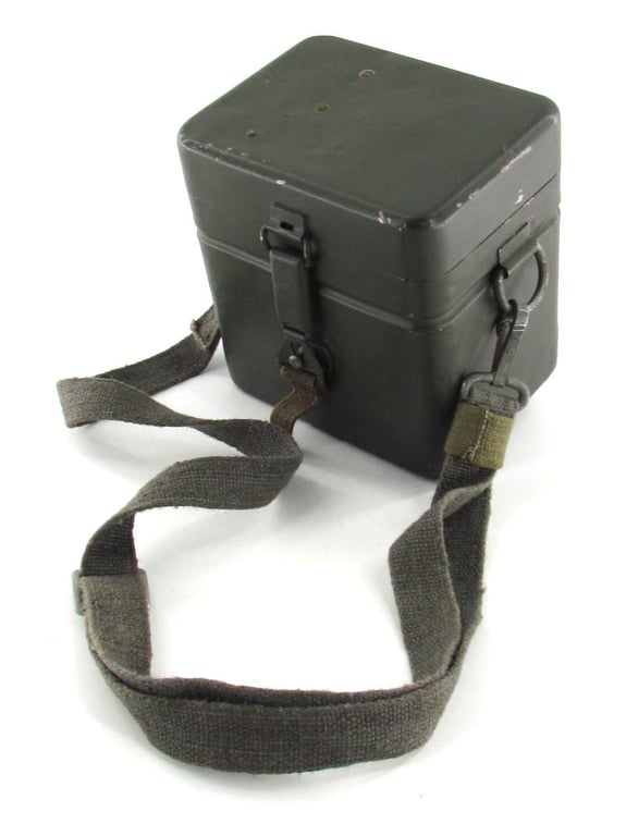 The box is nicely 'WaA' marked on the inside of the lid. The carrying strap is also an original late war one