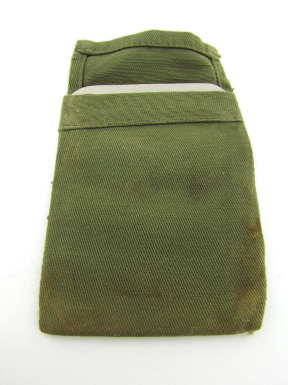 WWII British 1945 dated signal mirror and fabric case. The "mirror" itself is actually a highly polished piece of metal. See the photos but the mirror is marked 1945 " and with a British Broad Arrow. Original green case also included.