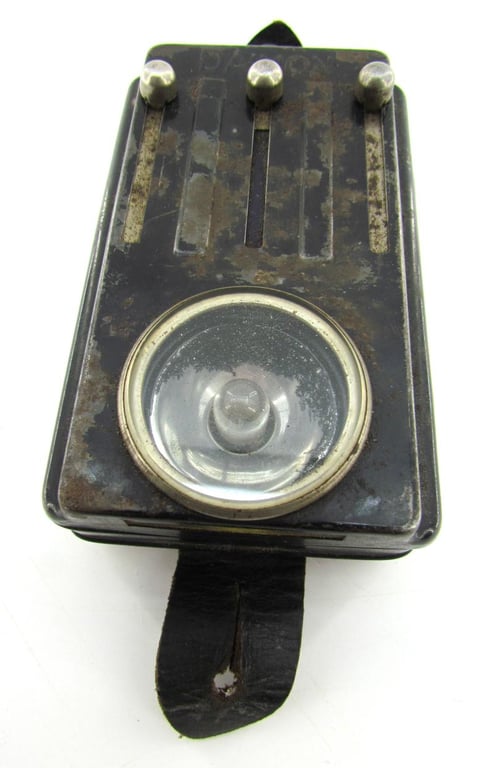 Wehrmacht issued Daimon flashlight in good used condition.The small rectangular glass on top is still intact which is virtually always broken!