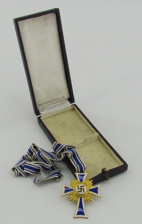 Ehrenkreuz der deutschen Mutter 1. stufe was awarded for exceptional merit to the German nation.” (to Reichsdeutsche and Volksdeutsche mothers who exhibited probity, exemplary motherhood, and who conceived and raised more than 7 children in the role of a parent)