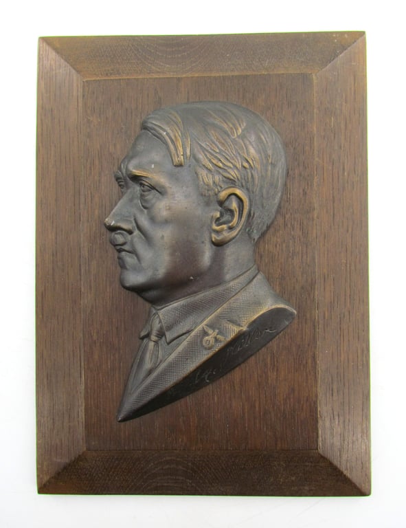The high-relief bronze portrait is meticulously detailed, capturing the likeness with remarkable precision, and bears the “A. Hitler” inscription .