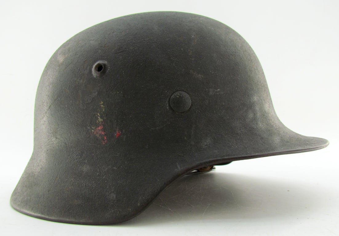 The helmet still shows small spots of grey Luftwaffe paint and a Luftwaffe decal.