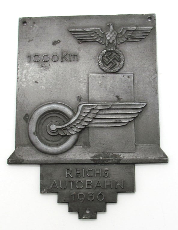 Offered for sale is a rare and 100% authentic commemorative plaque created to mark the completion of the first 1000 kilometers of the German Reichsautobahn , celebrated with the Führer in September 1936 .