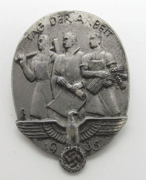 'Tag der deutschen Arbeit' 1935 Tinnie (Veranstaltungsabzeichen). This is a tinnie of the German National Labour Day, held at the 1st of May 1935.