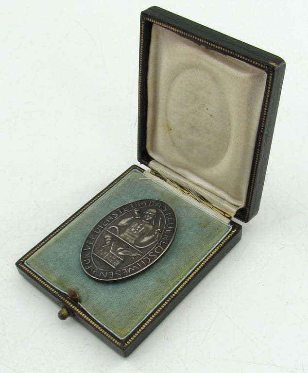 Rare German Silver "Erinnerungzeichen für Verdienste um das Feuerlöschwesen" in case