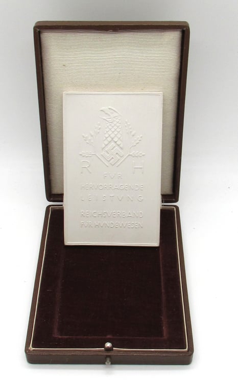 Extremely Rare Plaque – Reichsverband für das Deutsche Hundewesen – White Ceramic with Original Case – Mint Condition