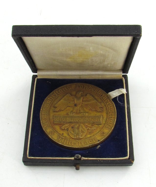 Beautiful non-portable commemorative medal , measuring 60mm in diameter , issued for the “Blut und Boden” (Blood and Soil) agricultural exhibitions in Thuringia during the 1930s.