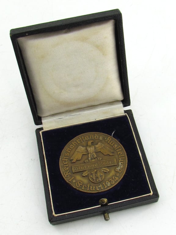scarce non-portable commemorative medal , issued for the “Blut und Boden” (Blood and Soil) agricultural exhibition held in Erfurt in 1934 .