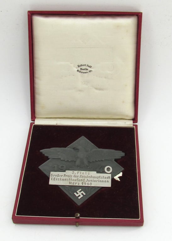 Plaque "Grosser Prize der Reichshauptstadt im Eiskunstlaufen für Juniorinnen, March 1940"in case