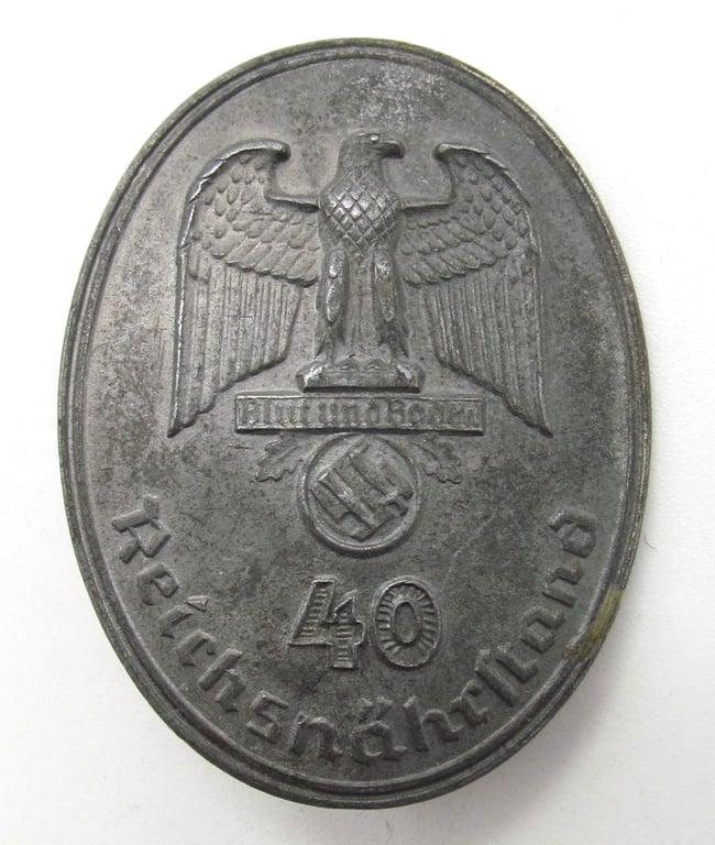 The badge features the national eagle above the motto “Treue um Treue” and the inscription “40 Reichsjahre”, symbolizing dedication and long-standing commitment within the agricultural structure of the Third Reich.
