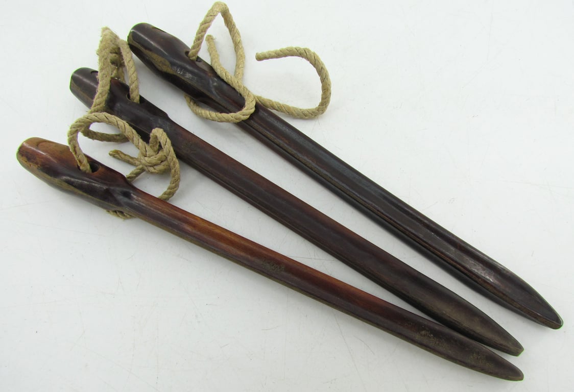 This is a nice set of Three original Wehrmacht Bakelite Tent pegs