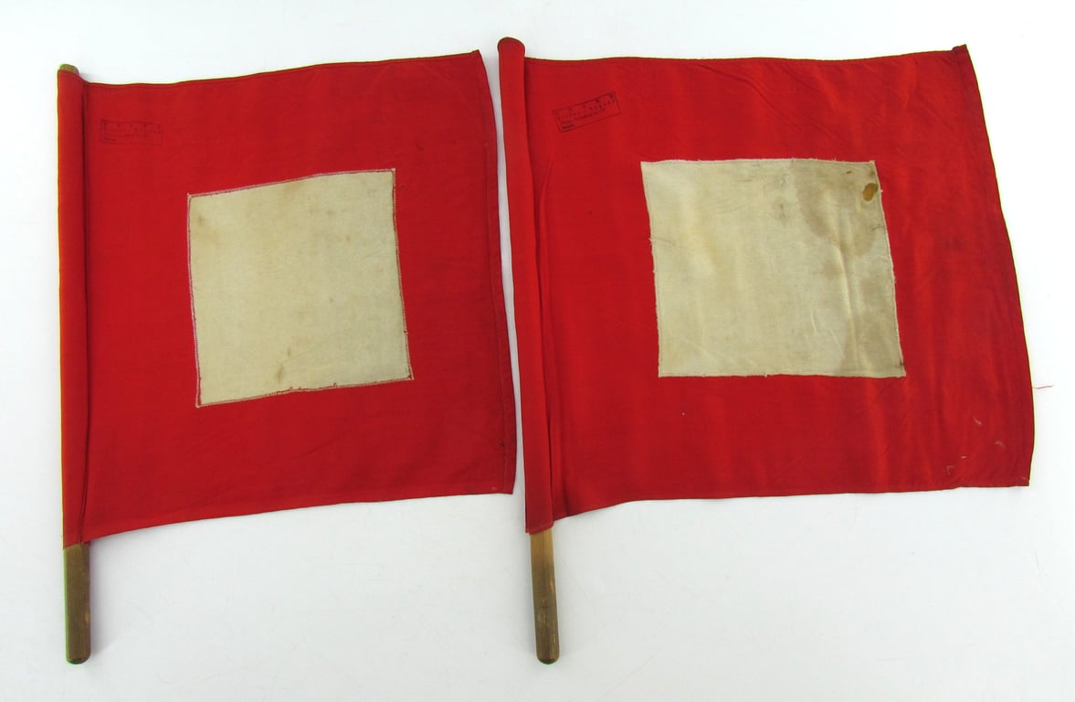 Rare Pair of Hitler Youth Marine (Marine-HJ) Signal / Training Flags – Unit Marked