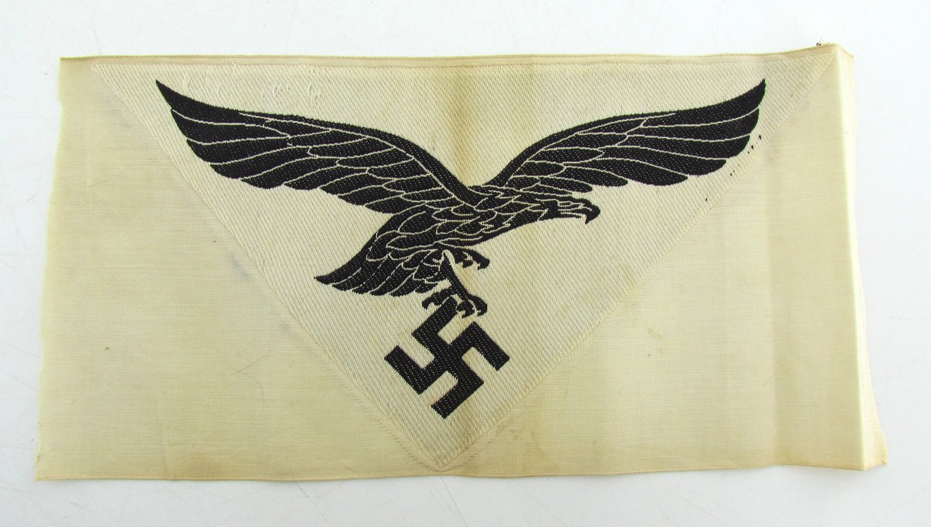 Luftwaffe BeVo Sport Shirt Breast Eagle. This is the larger type machine woven Luftwaffe eagle in black on white cotton as used on the various Luftwaffe sport-shirts and training outfits.
