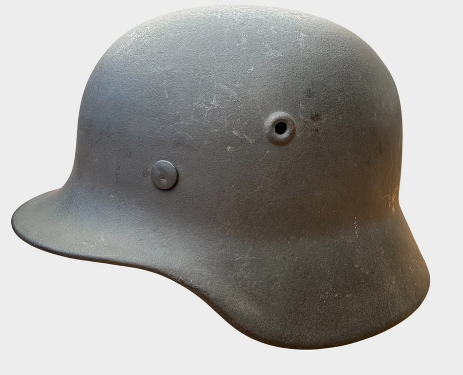A fine and honest example of a World War II German M40 combat helmet, manufactured by Sächsische Emaillierwerke, Lauter (marked SE62). This helmet represents a classic mid-war production piece, retaining a strong and untouched appearance.