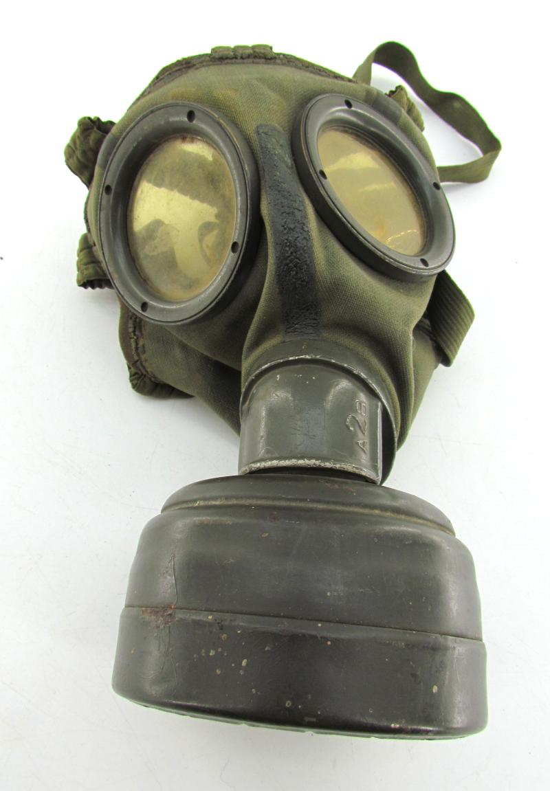 German GM30 Gasmask without Knöpflasche All straps are present and in a good condition Also several markings inside in a very good and supple condition Very nice to complete your gasmask cannister !!