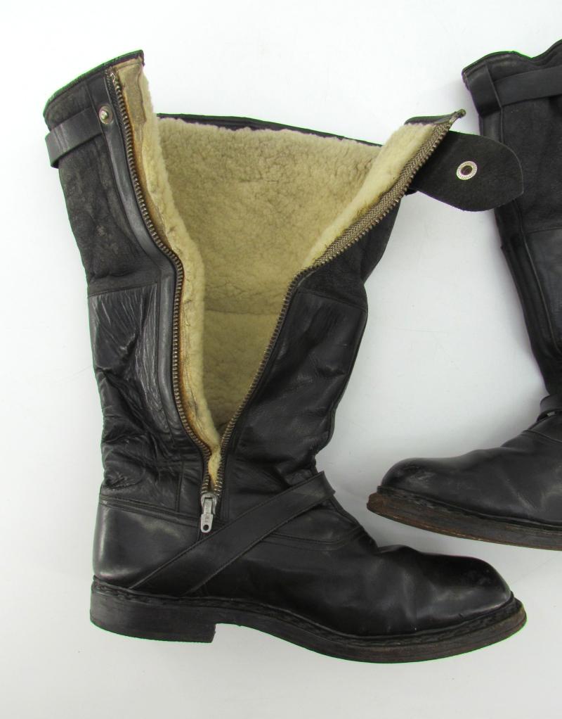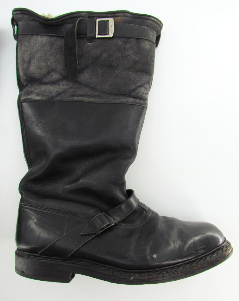 Luftwaffe Flight Boots (Fliegerstiefel). The boots are complete with functional "Wico" zippers and original leather straps around the top of the shaft in used but good condition