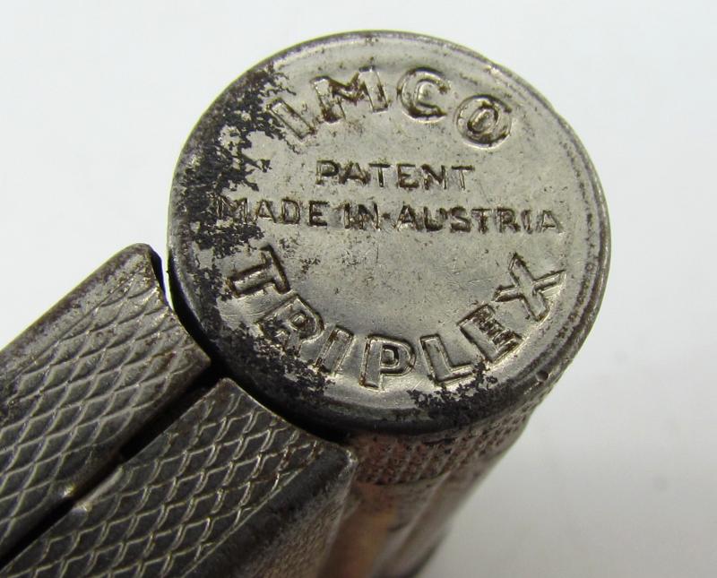 The Triplex lighter was developed in 1936 This is an early lighter as it reads "Made in Austria" on the base, rather than "Patent Austria" which was granted in 1937