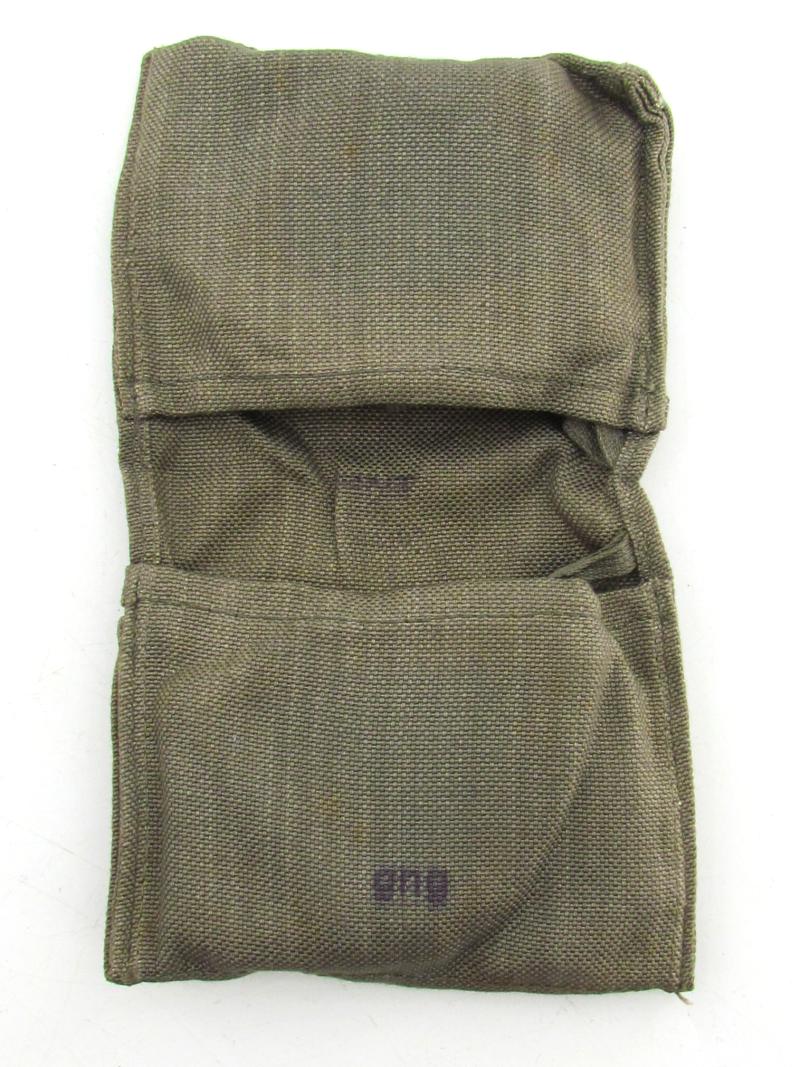Set of 4 Wehrmacht Dust & SunProtection Goggles in Pouch (Augenschützer 42 mit Trageumschlag). The German army issued a wide variety of protective, special duty and general purpose glasses and goggles for assorted personnel including sun glasses for use in the desert or snowy climates. One example of the goggles utilized were the 'Augenschützer 42', which were developed in 1942 as inexpensive, easily manufactured, eye protectors. The Augenschützer 42 were produced in two models with colored lenses for sun protection and clear lenses for dust protection. These disposable goggles proved quite popular and saw wide spread use in all theaters of action. This is a complete set consisting of 2 dust protection goggles and 2 sun protection goggles. The goggles are stored in their original cloth pouch as found, the pouch is nicely 'WaA' marked and maker marked with 'gng' indicating production by the company 'Auer-Gesellschaft AG' from Guben.