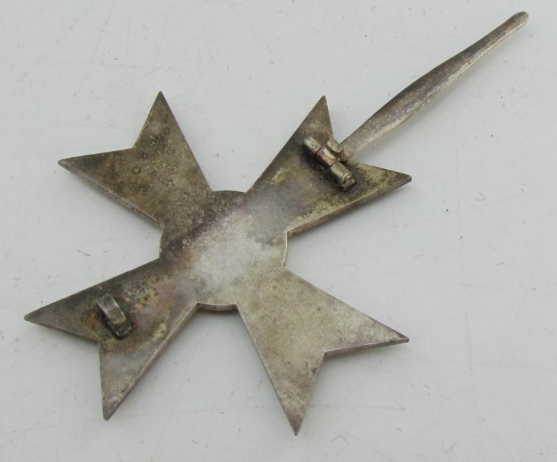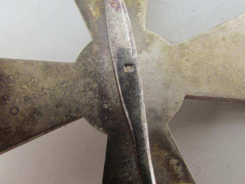 The cross is a nice tombak (Buntmetall) example, complete with its functional pin & catch. The cross is nicely maker marked with number '4' indicating production by the company of 'Steinhauer & Lück' from Lüdenscheid.