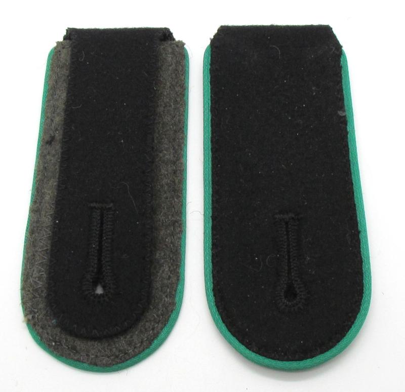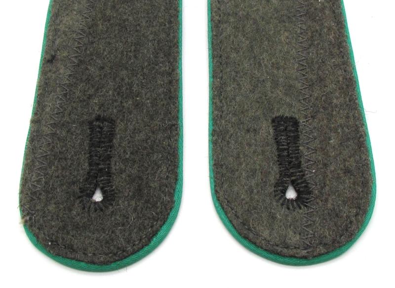 A set of grass green piped Waffen-SS shoulder boards for a member of the mountain troops ‘Gebirgsjägers’. Length about 10,5 cm in a very good condition!