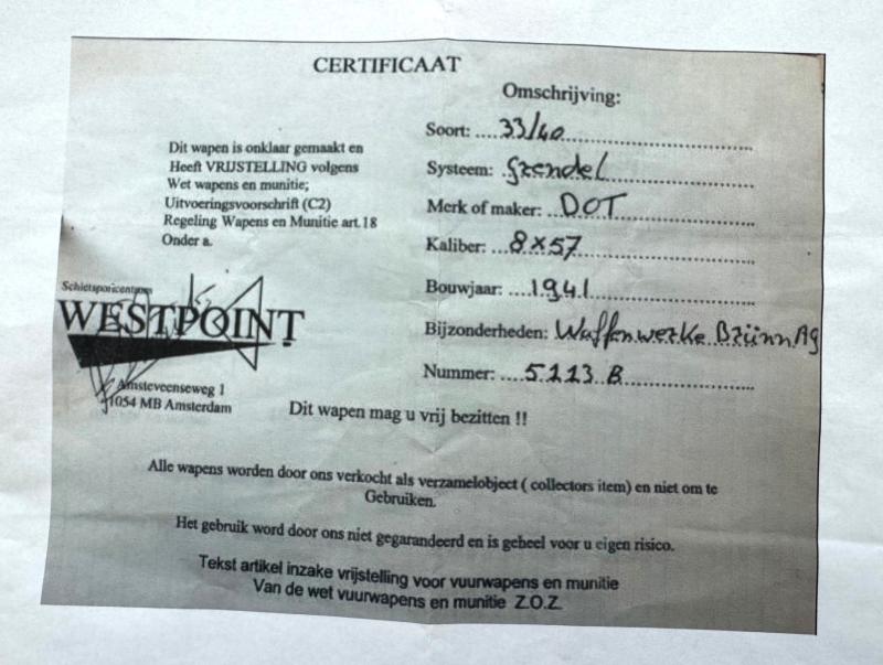 gemarkeerd met "DOT- 1941" voor fabricage door Waffen-Werke Brünn AG