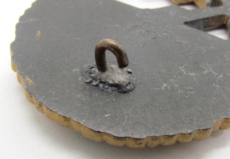 Kriegsmarine coastal artillery badge cased – Friedrich Linden, Lüdenscheid. Mid to late war zinc ‘Küstenartillerie-Kriegsabzeichen’ with FLL43 makers mark.