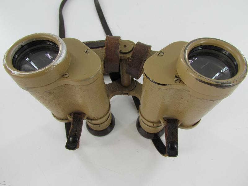 A very nice Tan Dienstglas marked ddx It has his original straps and WaA marked rain shield Strichplatte nicely visible Very clear view