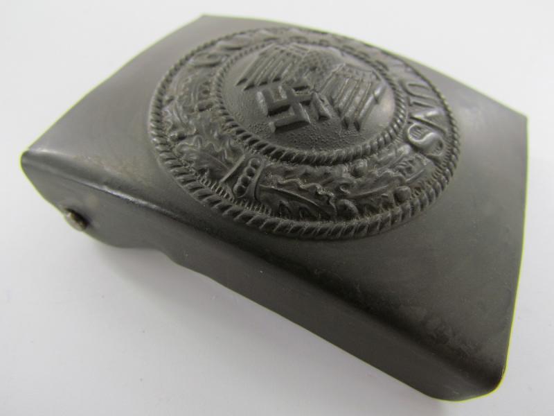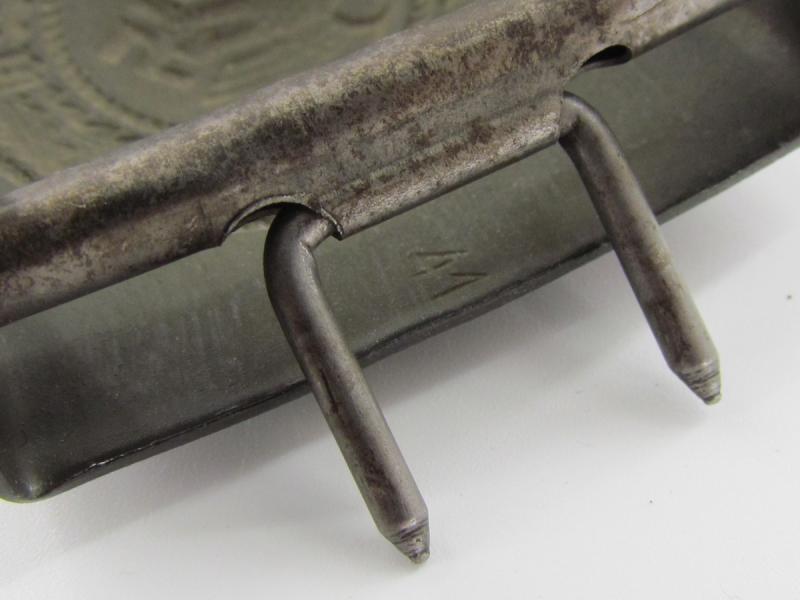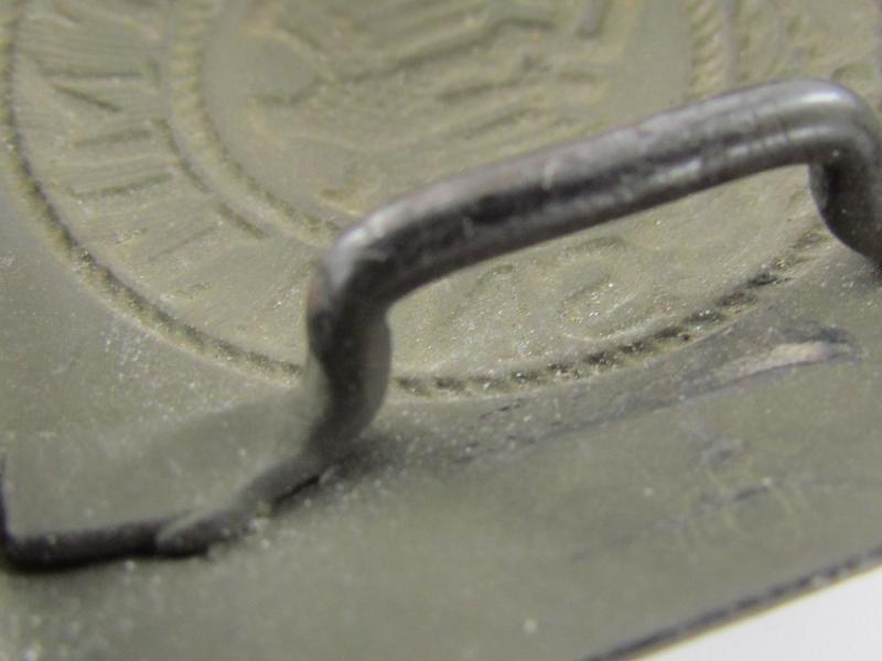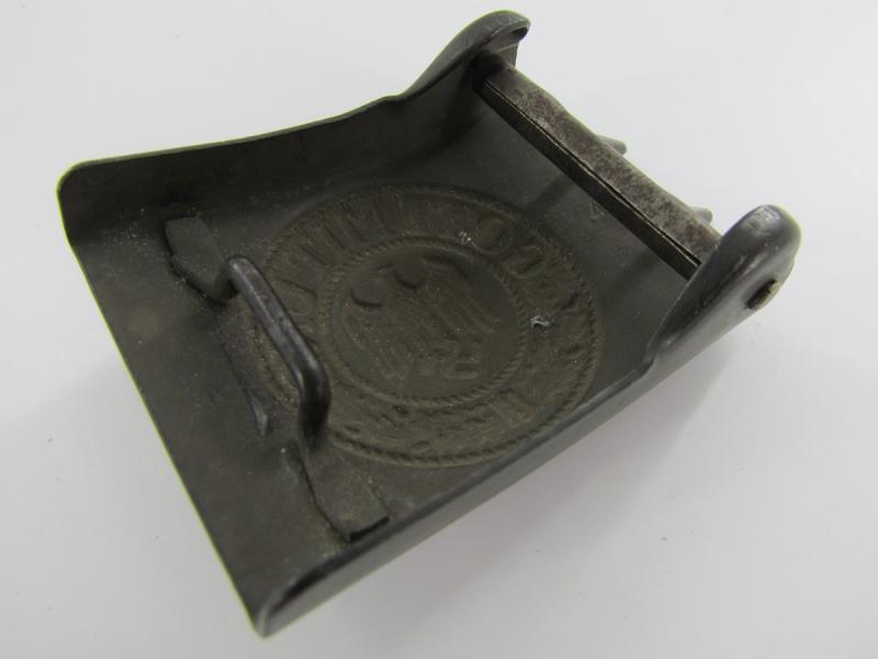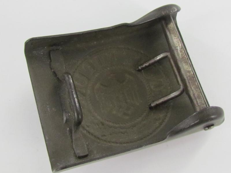 Original field grey painted Wehrmacht steel buckle. Made from iron. "GB" maker marked (Gustav Brehmer). Marked 41 under the prongs