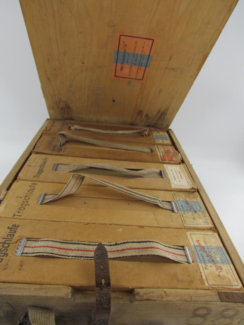A very nice and desirable K98 wooden ammo crate with the rare cardboard 'Trageschlaufe'.