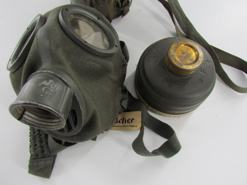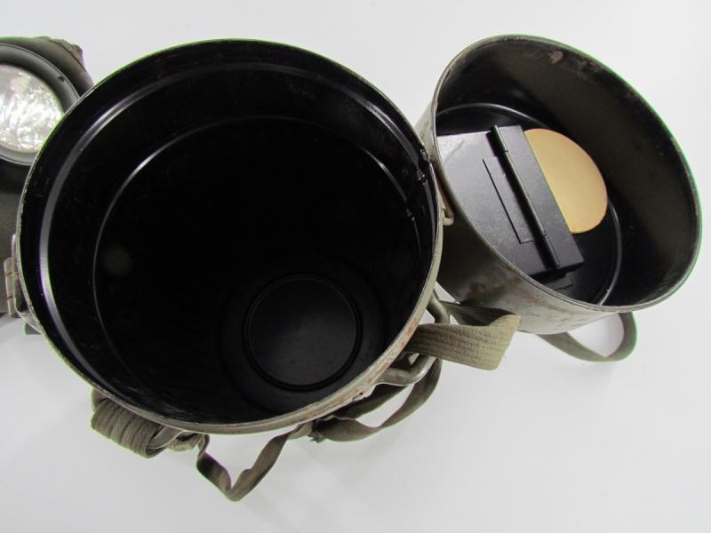German Luftschutz gasmask set in a very good condition The cannister has almost all of the factory green colour There is a name tag on the gasmask Sold as been found