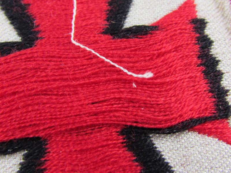 The patch is constructed of multi-coloured machine embroidery on a white rayon backer, obverse depicts central red shield bearing an Iron Cross-style Cross with central mobile swastika.