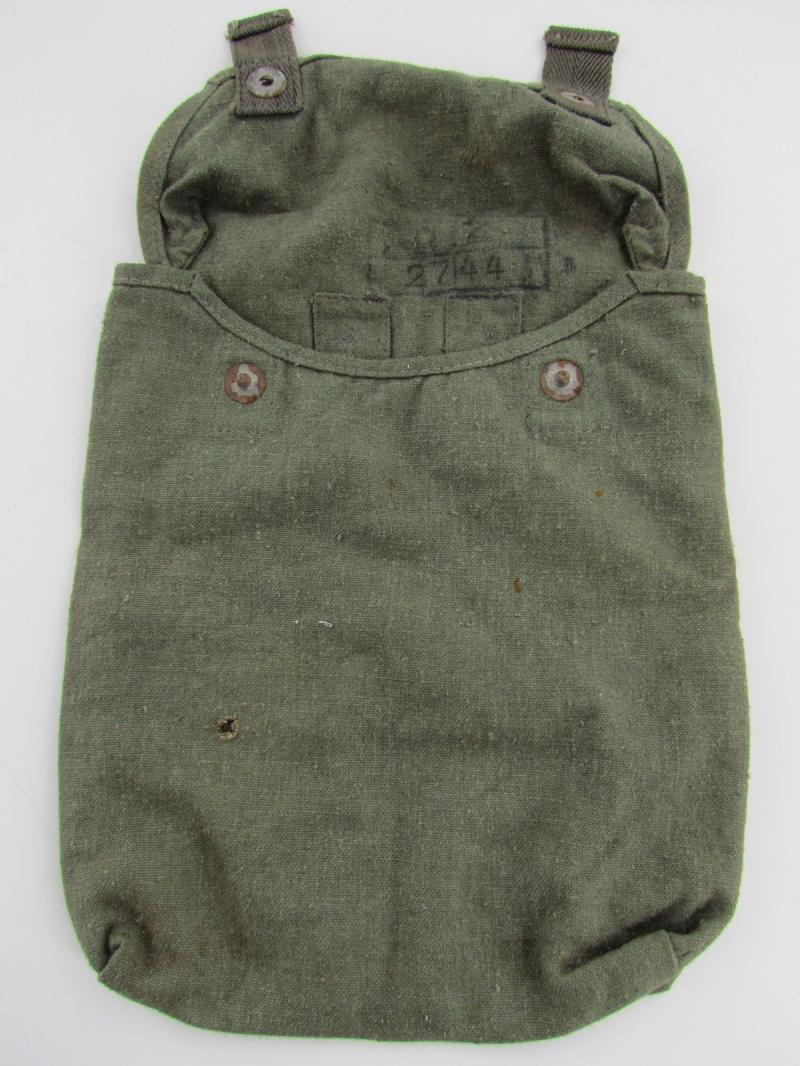 This is a late war production. The pouch features some wear from storage but is in a very good condition.... Would be great to finish a gasmask display!