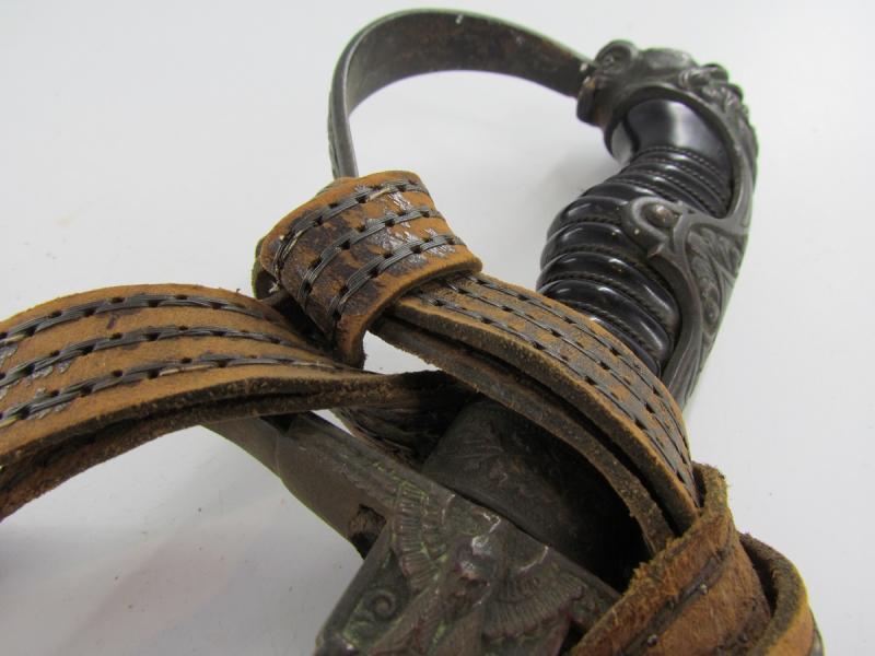 Wehrmacht sword with“Löwekopf” Head In its original scabbard. Non maker marked sword in used condition. Sold as been found