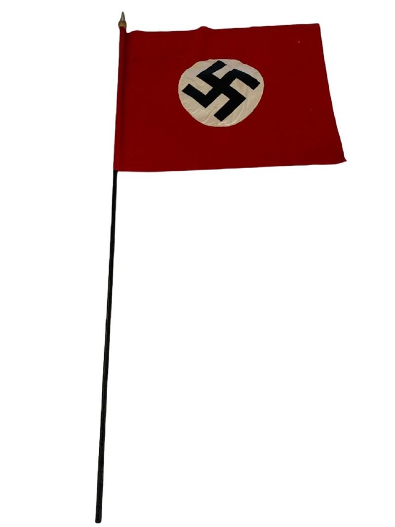 In a very good condition Flag on a wooden stick Stick has a lenth of 105 cm Flag is 45 x 38 cm double sided
