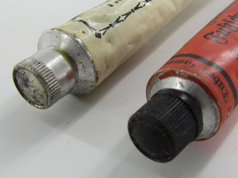 Nice original metal medical unit box which holts tubes with foot ointment. In originel paint and 2x unissued tubes included Great for a medical display! In very good condition.