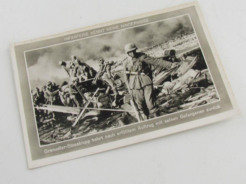 Postcard Wehrmacht, infantry knows no obstacles, grenadier shock troop, prisoners of war unissued condition approx. 15 cm X 10 cm