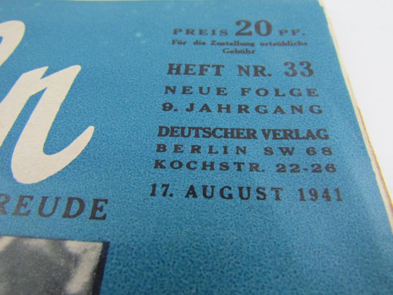 a nice period issue of the magazine Koralle. with interesting period photos and articles inside. Dated 17 august 1941 in used but good condition
