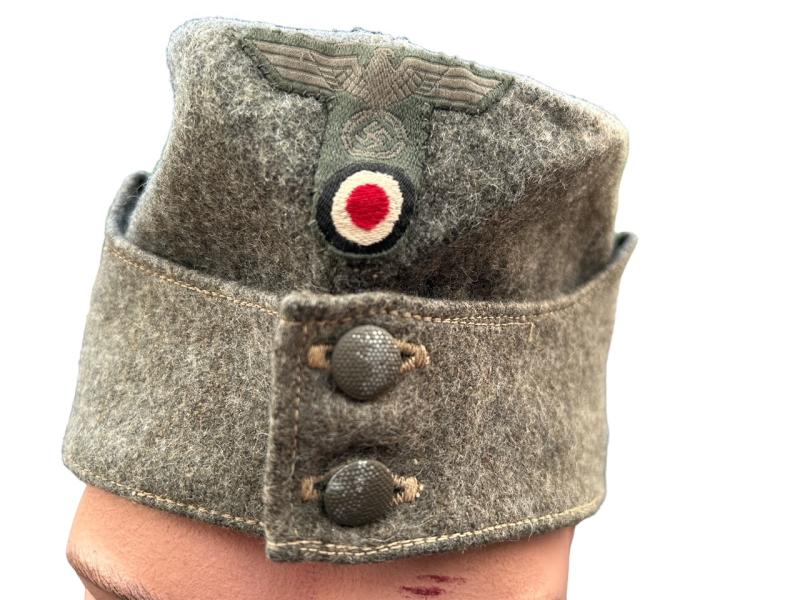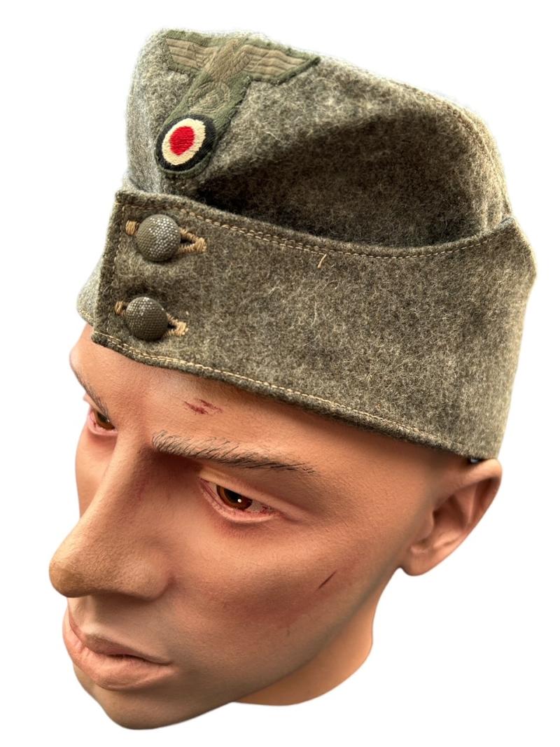 Excellent, untouched Heer M42 sidecap with factory sewn trapezoid insignia.
