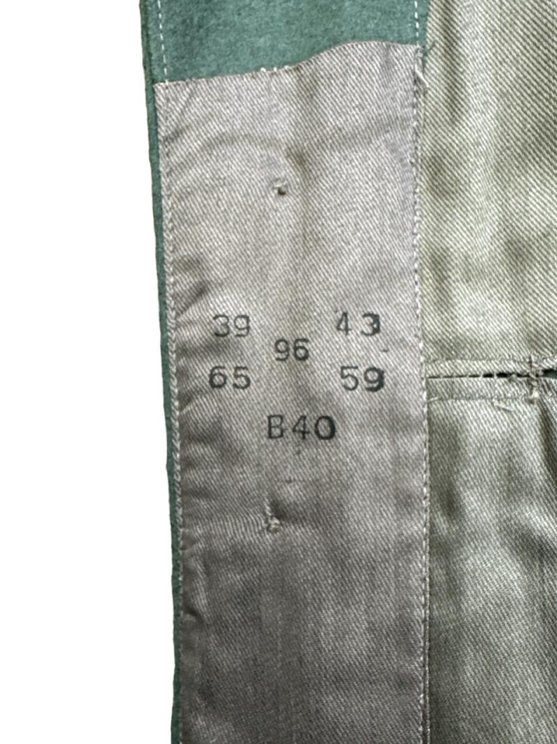 The tunic has all its originally sewn insignia and buttons and has a nice factory stamp indicating it was made in 1940.