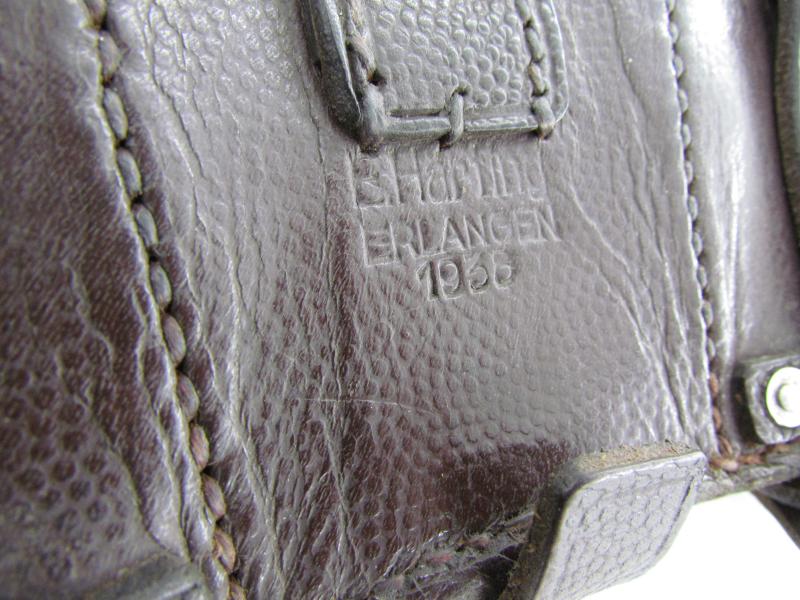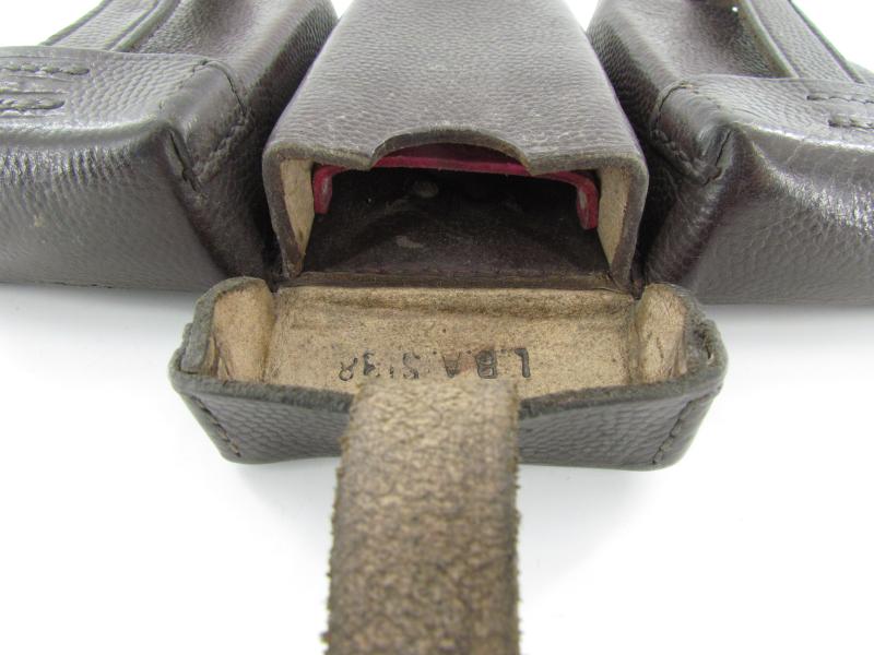 The pouch is nicely maker marked by E Harting Erlangen and dated 1938. The pouch is nicely 'L.B.A.' (Luftwaffe Bekleidungs Amt) marked as well.