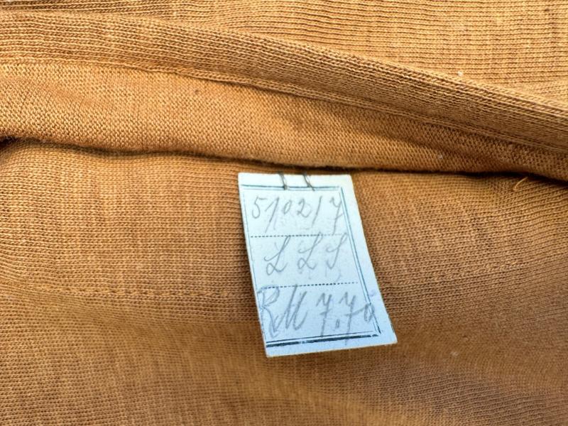 Unissued NSDAP brown shirt in excellent condition. Original attached buttons and tag. "Benger" tag (maker) attached to the neck. Paper seller's tag attached to the front side.